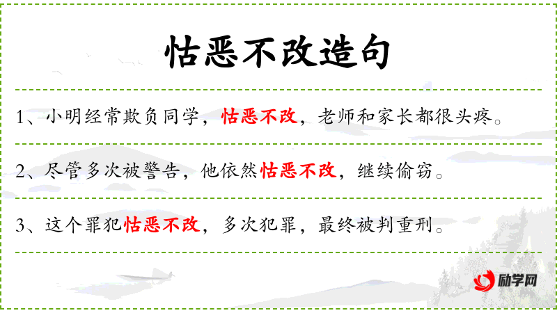 - 状语:怙恶不改地