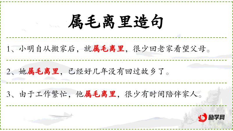 句子:“他属毛离里,已经很久没有参加过家族的聚会了。”