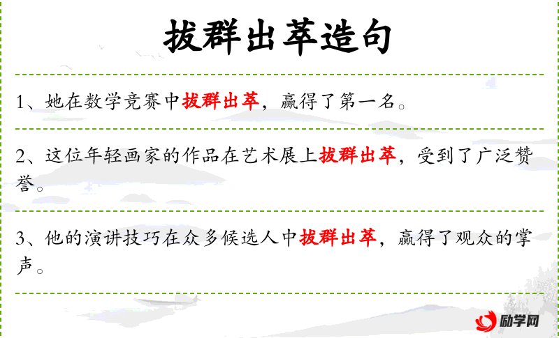 - 成语:拔群出萃,强调了小明项目的卓越性。