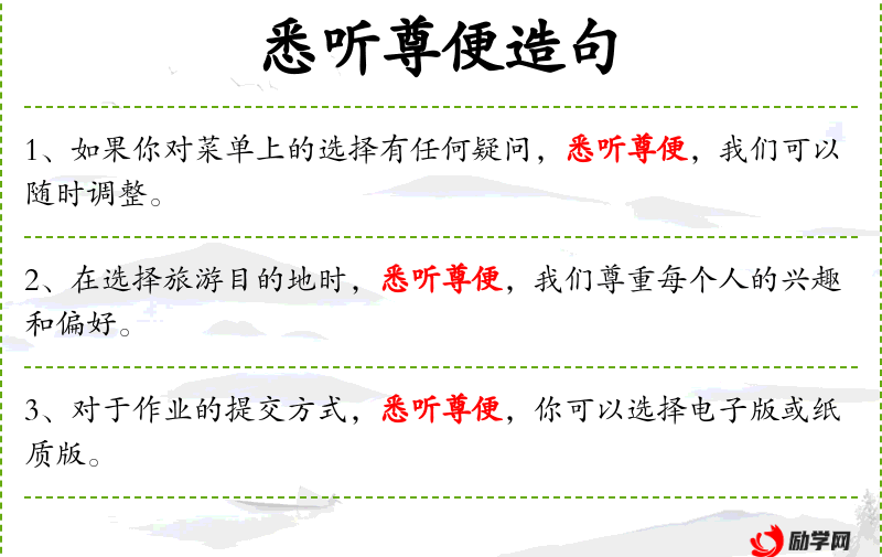 - 文化意义:悉听尊便是**文化中常见的礼貌表达,强调尊重和自由。