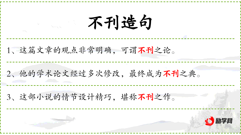 1. 【不刊】 - 古代文书书于竹简,有误,即削除,谓之刊。不刊谓不容更动和改变; 引申为不可磨灭。