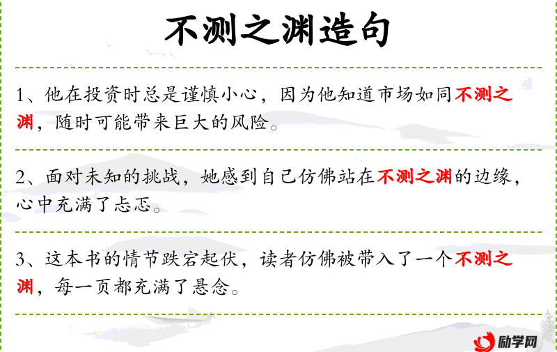 1. 【不测之渊】 深渊。亦以比喻危险之地。