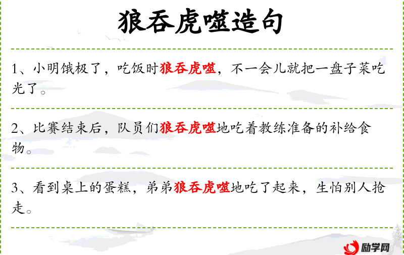 1. 【狼吞虎噬】 - 像狼虎那样吞食咬嚼。比喻极为贪婪残忍。