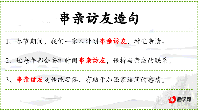 1. 【串亲访友】 走亲戚,看朋友。