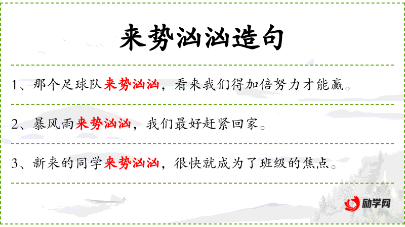 5. 【来势汹汹】 - 动作或事物到来的气势很厉害。