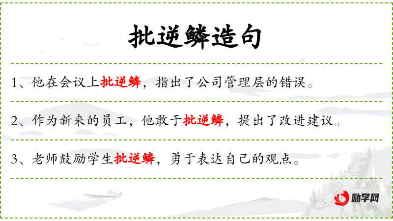 句子:“老师鼓励学生批逆鳞,勇于表达自己的观点。”