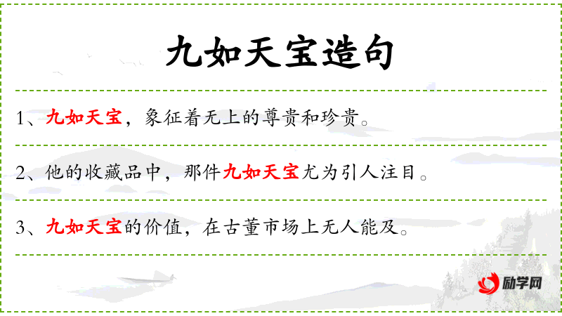 句子:“这件古董被鉴定为九如天宝,其历史价值不可估量。”