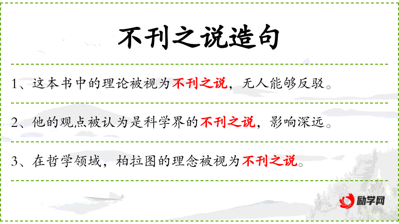 1. 【不刊之说】 指正确的、不可修改的言论。