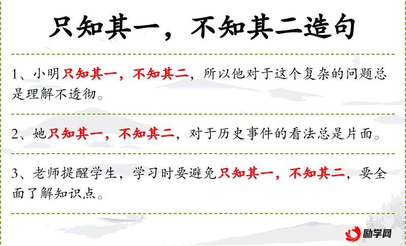 - 成语“只知其一,不知其二”:这个成语在**文化中常用来批评某人缺乏全面的知识或理解。
