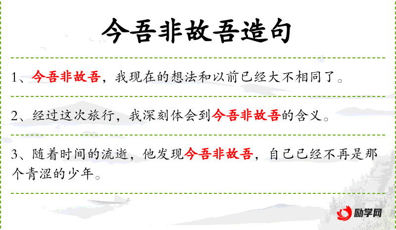 - 通过这次旅行,我对“今吾非故吾”的含义有了深刻的体会。