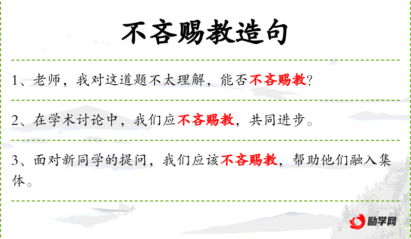 句子:“面对新同学的提问,我们应该不吝赐教,帮助他们融入集体。”