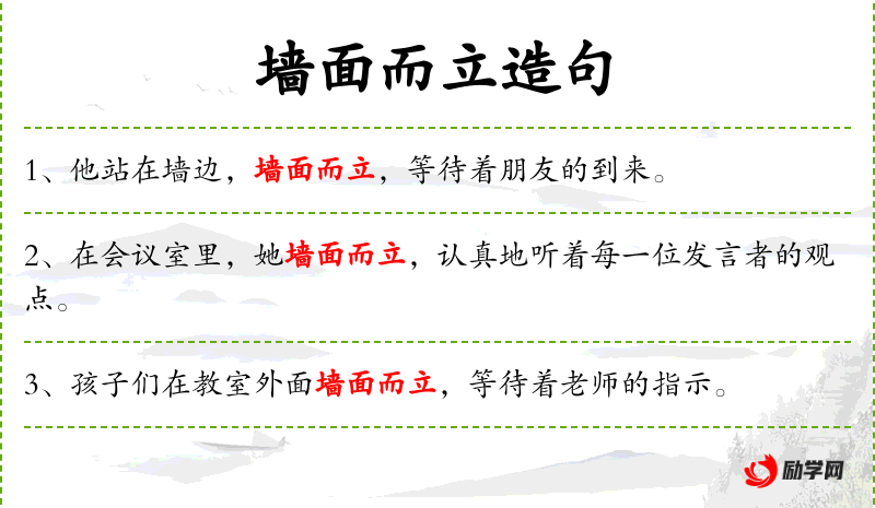 - 墙面而立:形容警察站在墙边。
