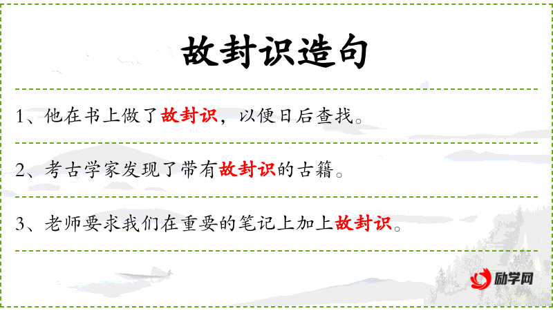 - 他为了日后查找,在书上做了故封识。