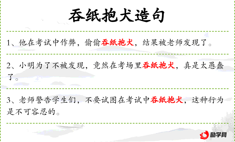 - 谓语:吞纸抱犬、结果不仅考试成绩作废,还被学校记了大过