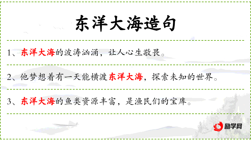 - 宾语:有一天能横渡东洋大海,探索未知的世界