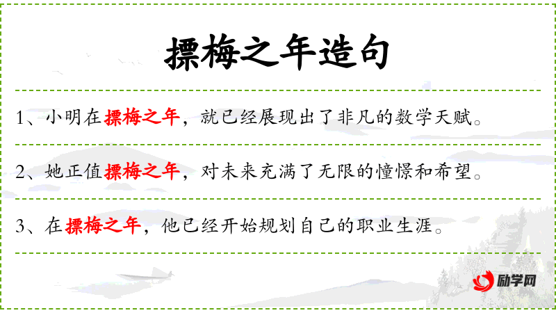- 摽梅之年:这个成语源自**古代,指女孩子到了可以结婚的年龄,通常是十五岁左右。在现代,这个成语也可以泛指青春期。