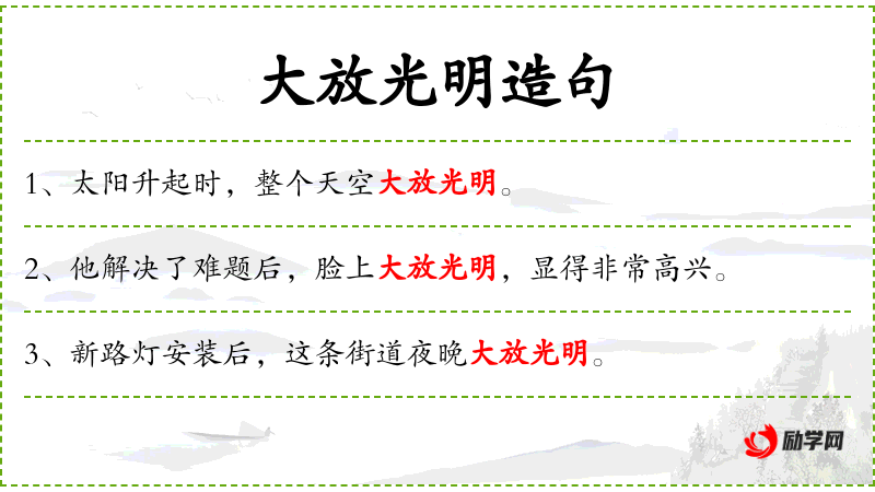 - 用法:描述自然现象,也常用来象征希望或美好的变化。