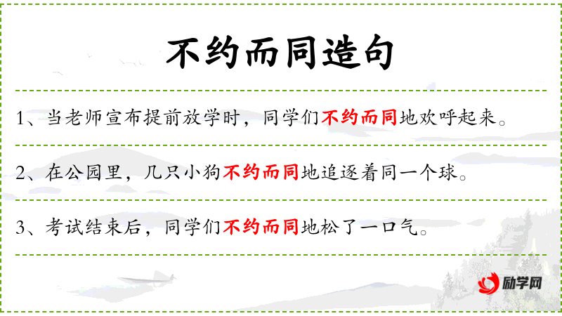 2. 【不约而同】 - 约:相约。事先没有约定而相互一致。