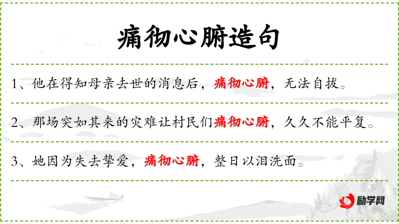 6. 【痛彻心腑】 痛到心坎里。形容痛楚非常。