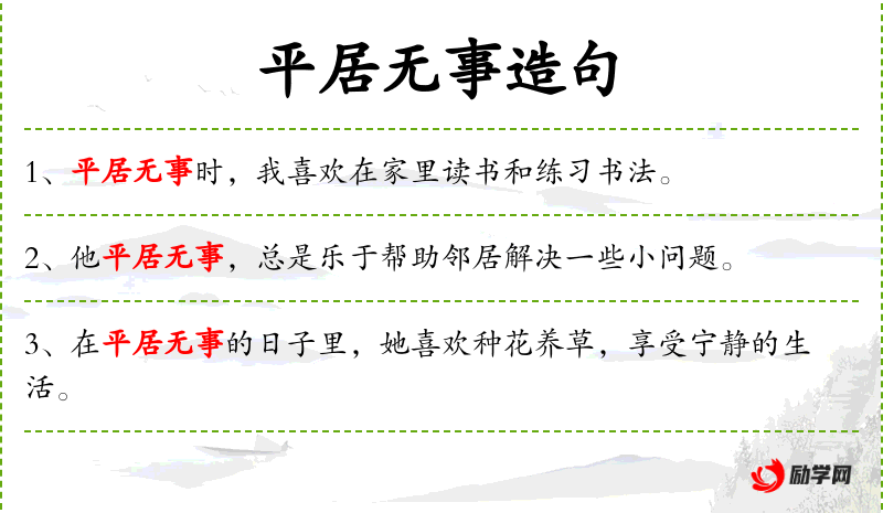 - 平居无事:指日常生活中没有特别的事情发生,平静的日子。