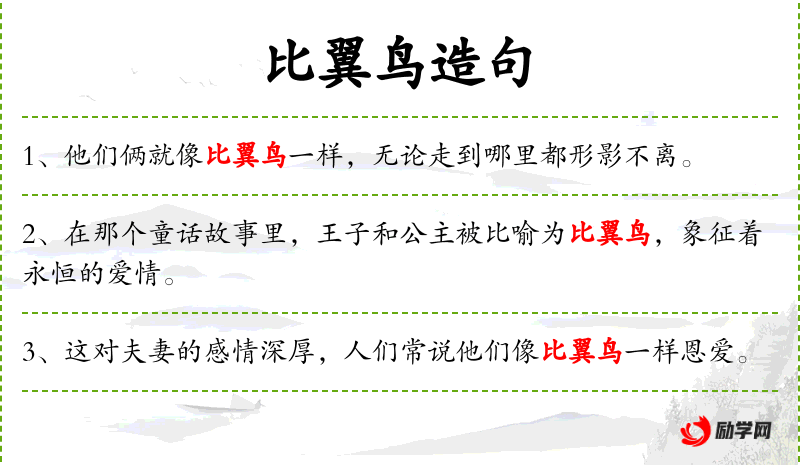 2. 【比翼鸟】 - 传说中的一种雌雄在一起飞的鸟。比喻恩爱夫妻。