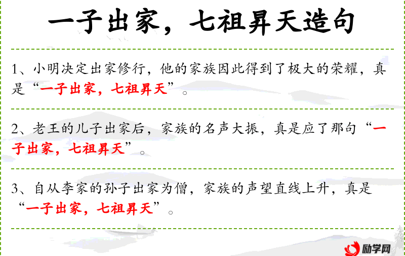 - “李家孙子的出家行为,使得家族声望迅速提升,这正是‘一子出家,七祖昇天’的写照。”