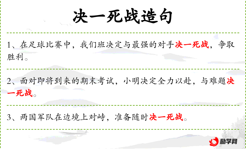 - 决一死战:这个表达在**文化中常用来形容激烈的竞争,源自古代战争的比喻。