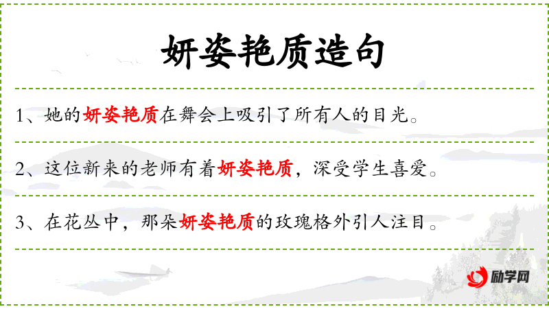 - 主语:她的妍姿艳质