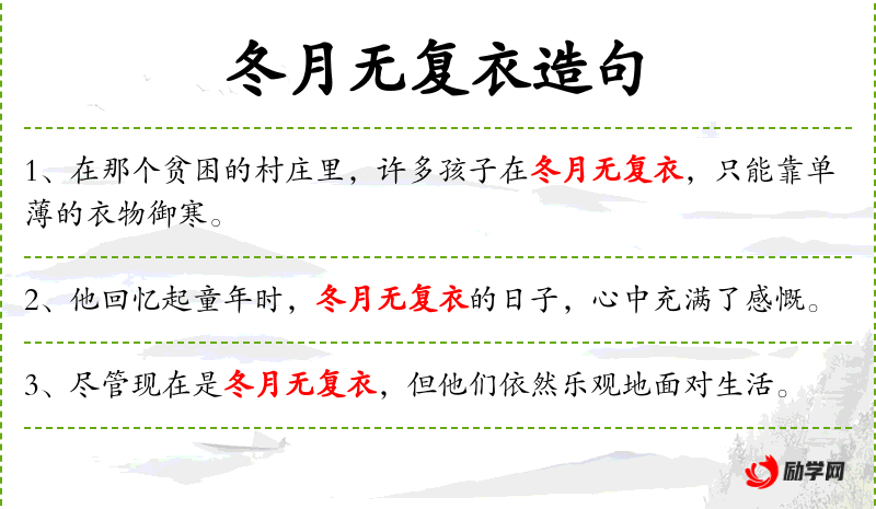 句子中的“冬月无复衣”可能反映了过去某些地区或家庭在冬季的贫困状况,这种描述可能与当时的社会经济背景有关。了解这种背景有助于更深刻地理解句子的含义。