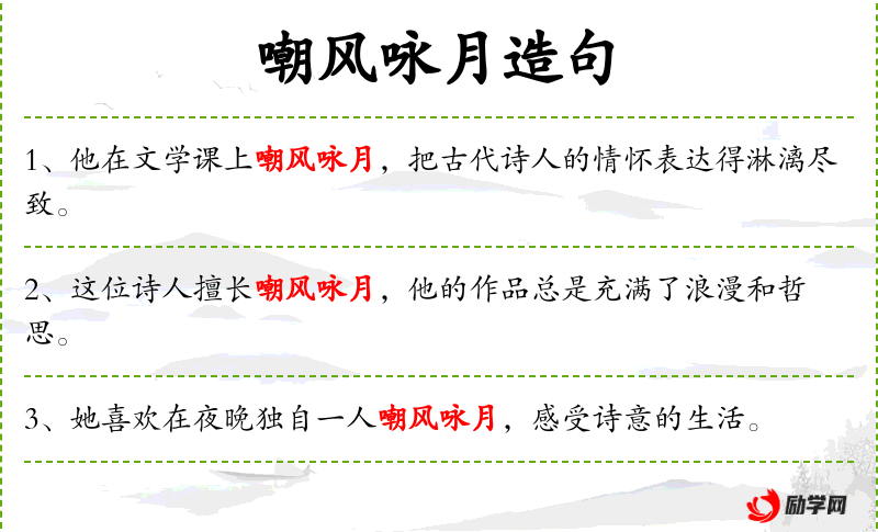 - “嘲风咏月”是**古典文学中常见的主题,反映了文人对自然景物的感悟和审美情趣。