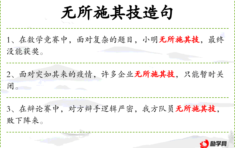 - 无所施其技:无法施展自己的技能,形容处于劣势。