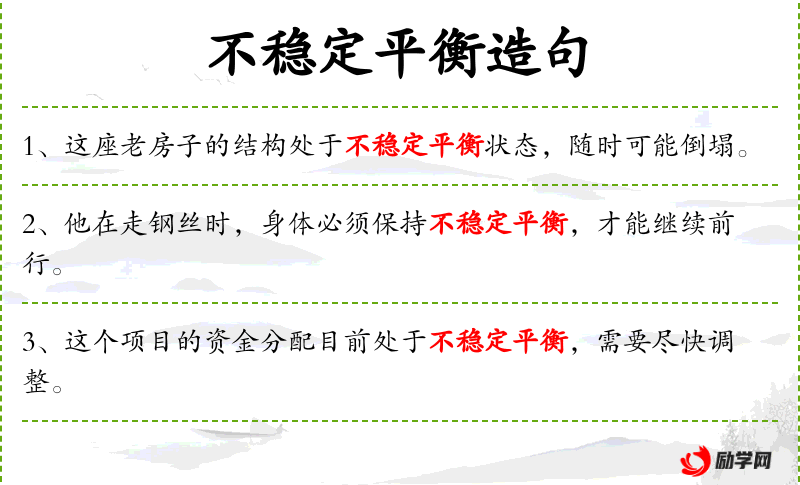 1. 【不稳定平衡】 受到微小的外力干扰就要失去平衡的平衡状态,如鸡蛋直立时的状态。