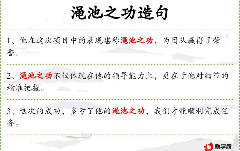 6. 【渑池之功】 渑池:古城名,在今河南渑池县南。本指战国时赵国蔺相如在渑池会上不畏秦王,为赵国立下功勋。后泛指为国立下巨大功勋。