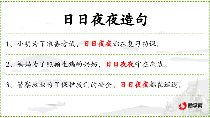 - 谓语:为了帮助学生,日日夜夜都在备课和批改作业