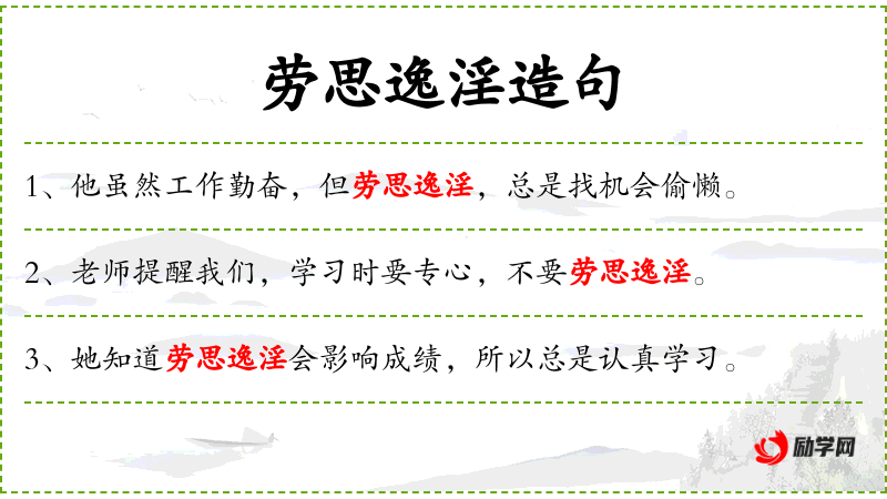 - 劳思逸淫:成语,意思是过度思考而忽视实际行动,或过度放纵自己。