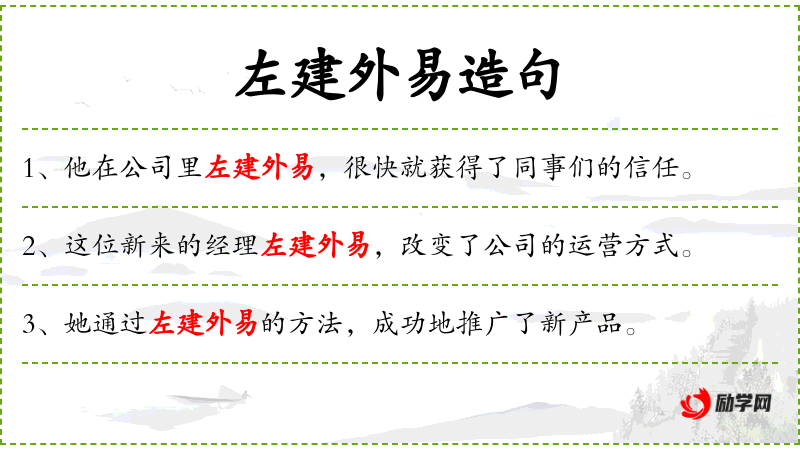 - “左建外易的策略使得他们能够迅速占领市场。”