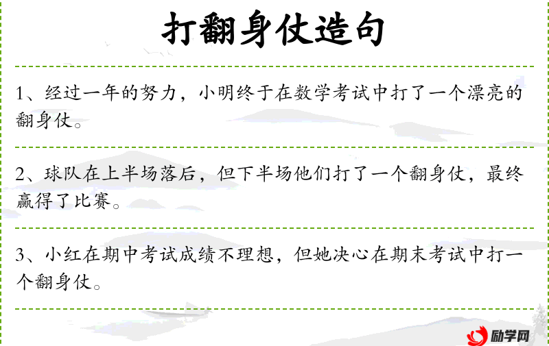 - 成语:“打了一个翻身仗”是一个常用的成语,比喻在不利情况下反败为胜。