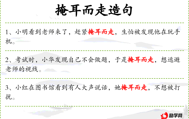 - 在办公室听到同事的八卦,小红掩耳而走,表明她不想参与。