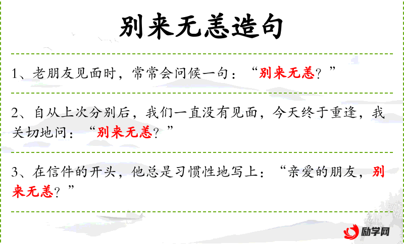 - 文化意义:“别来无恙”源自**古代,是一种传统的问候方式,表达了对对方的关心和祝福。