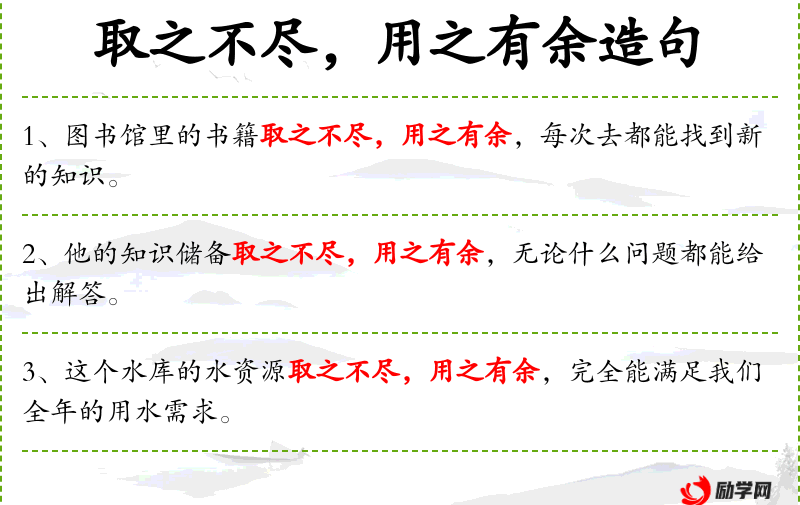 - 句子中的“取之不尽,用之有余”是一种典型的汉语表达,强调资源的丰富和持续性。