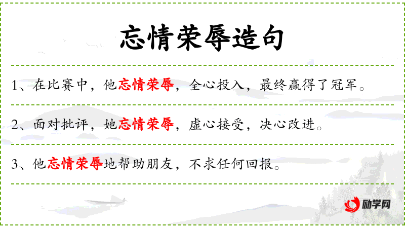 句子:“面对生活的起伏,他忘情荣辱,保持平和的心态。”