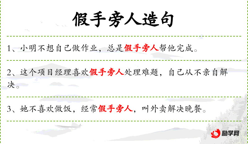 1. 【假手旁人】 假:利用。借助别人来为自己办事。