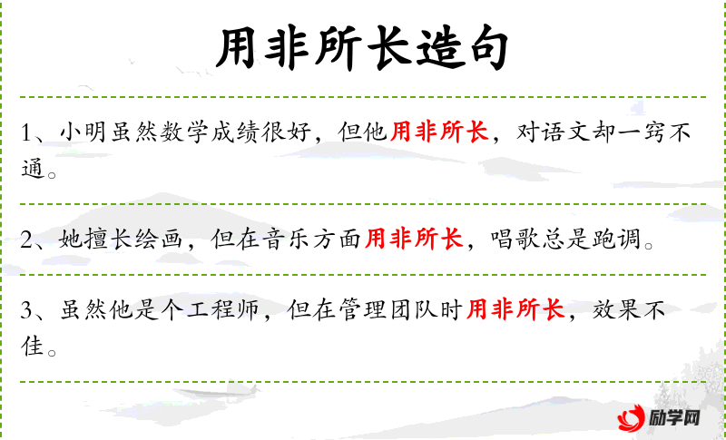 1. 【用非所长】 - 使用的不是他的特长。