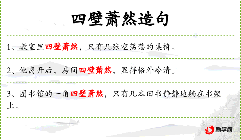 - 萧然:形容环境冷清、空旷,没有生气。