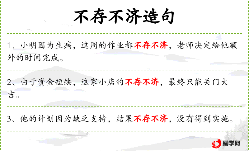 句子:“由于资金短缺,这家小店的不存不济,最终只能关门大吉。”