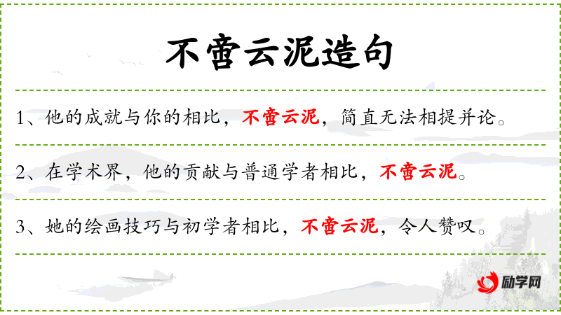 1. 【不啻云泥】 - 不啻:无异于。无异于从云天之上到地上的泥土的距离。比喻差别极大