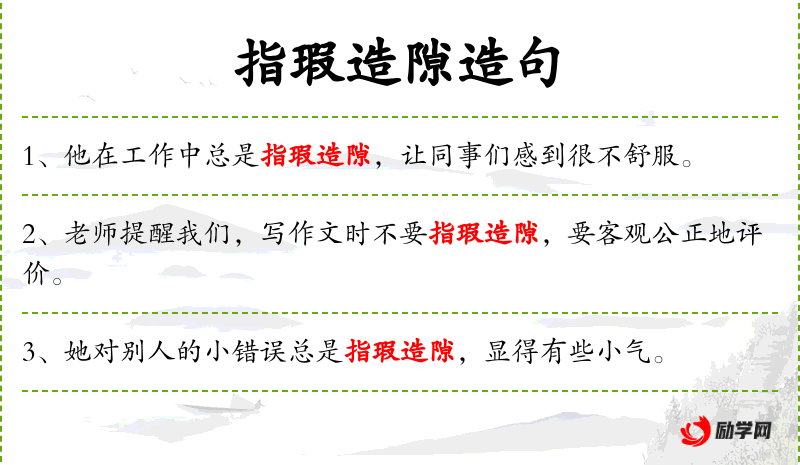 - 指瑕造隙:成语,意思是挑剔小毛病,制造裂痕。