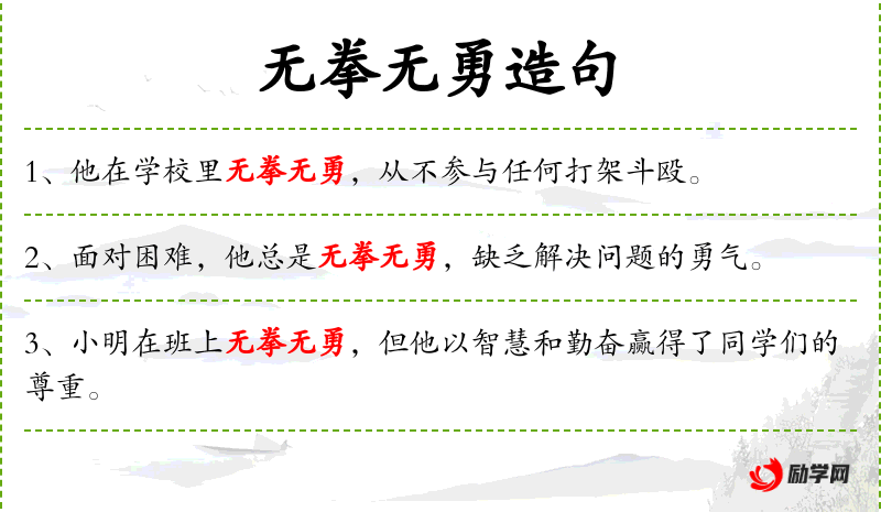 - 无拳无勇:无拳(without physical strength),无勇(without courage)