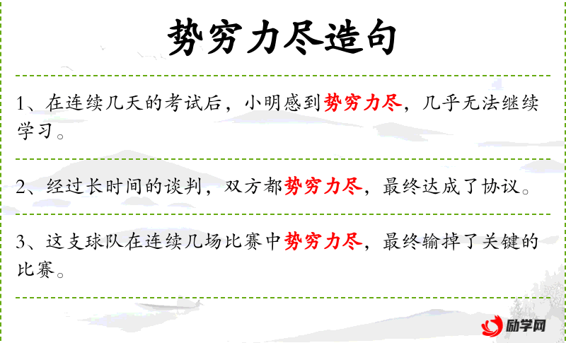 - 英文:使用了“exhausted”来表达“势穷力尽”,强调了小华的疲惫感。