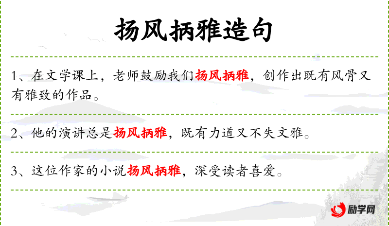- 扬风栉雅:这个成语体现了**传统文化中对文学艺术的高雅追求。